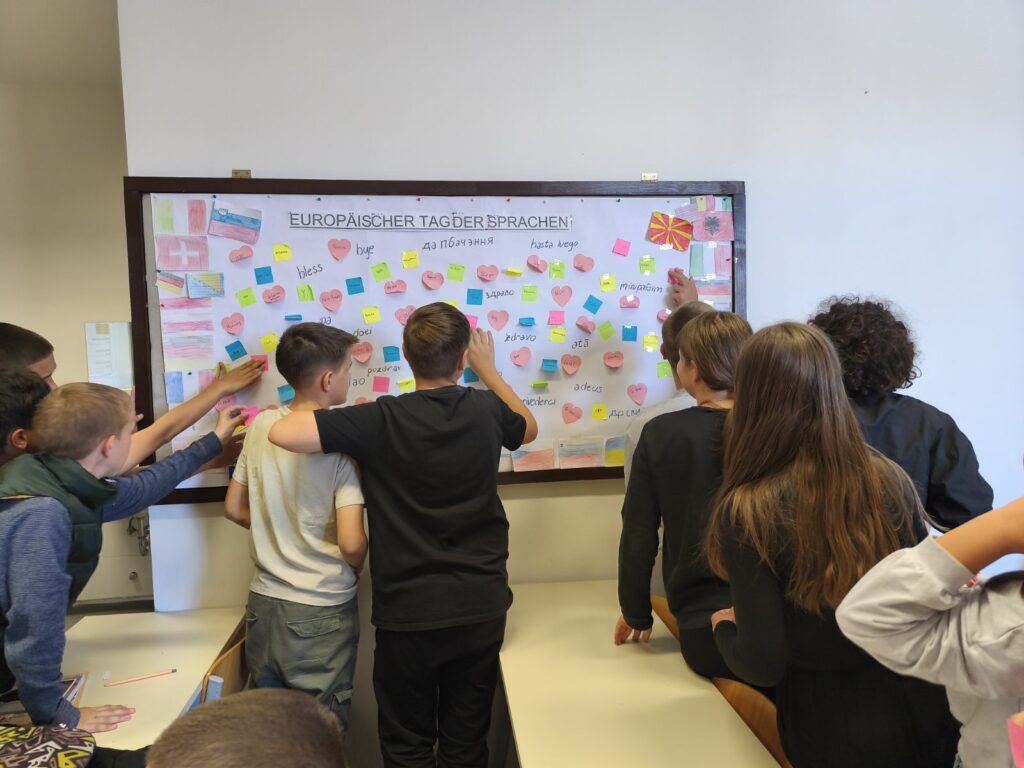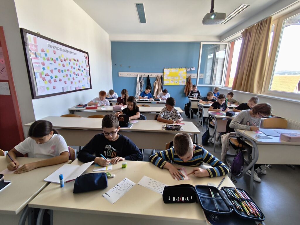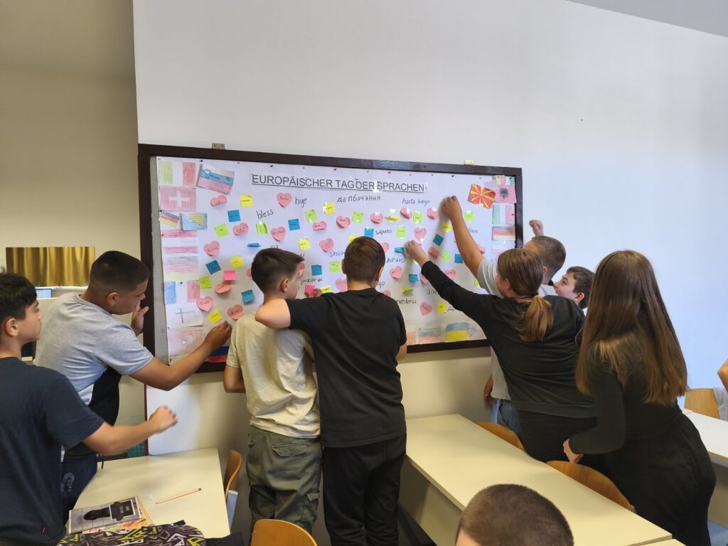 Na času njemačkog jezika, učenici su s velikim entuzijazmom izrađivali zastave evropskih zemalja, pripremili i proveli anketu među učenicima škole te ispisivali pozdrave i riječi na različitim jezicima, pokazujući pritom otvorenost, znatiželju i poštovanje prema jezičkom i kulturnom bogatstvu Evrope.