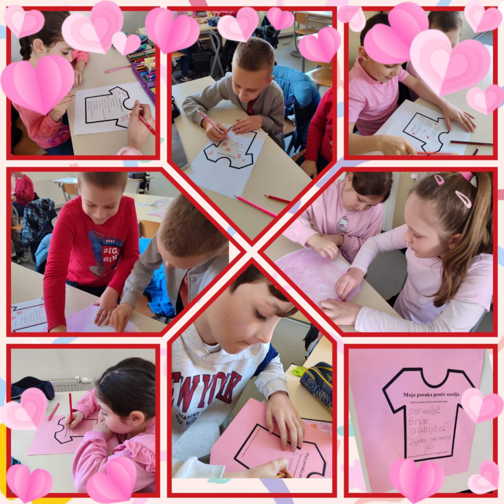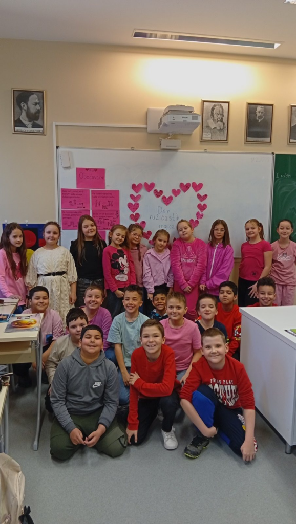 Danas smo u našem razredu realizovali radionicu povodom Dana ružičastih majica, dana posvećenog prevenciji vršnjačkog nasilja. Kroz razgovor, igru i kreativne aktivnosti učili smo kako graditi sigurno okruženje za sve.