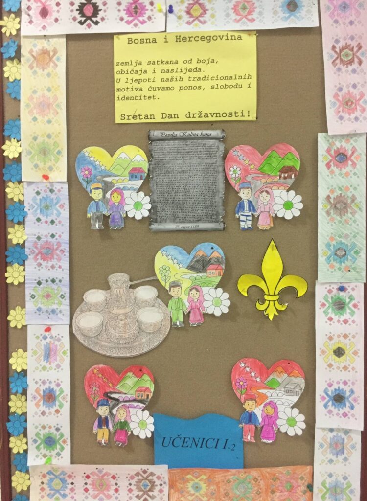Domovino Bosno i Hercegovino Bosna i Hercegovina, zemlja satkana od boja, običaja i naslijeđa. U ljepoti naših tradicionalnih motiva, čuvamo ponos, slobodu i identitet. Sretan Dan državnosti! učenici I-2