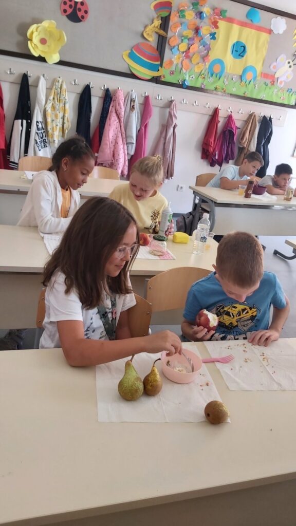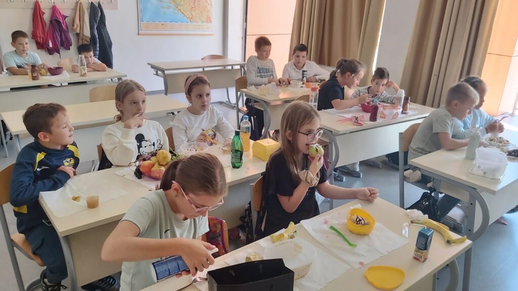 U okviru nastavne jedinice iz moje okoline „Smjese u svakodnevnom životu“ učenici IV-2 zajedno sa učiteljicom Selmom Srnom danas su praktično učili o ovoj temi. Zajedno su pripremili ukusnu voćnu salatu i kroz druženje uočili kako se različite namirnice spajaju u jednu šarenu smjesu.