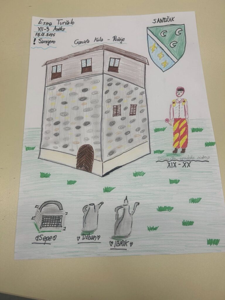 Tokom radionice učenici su kroz svoje crteže predstavili sarajevski Sebilj, bošnjačku nošnju rožajskog kraja, Kučansku džamiju u Rožajama, staru čaršiju Novog Pazara i muzejske predmete iz muzeja “ Ganića kula”Rožaje.