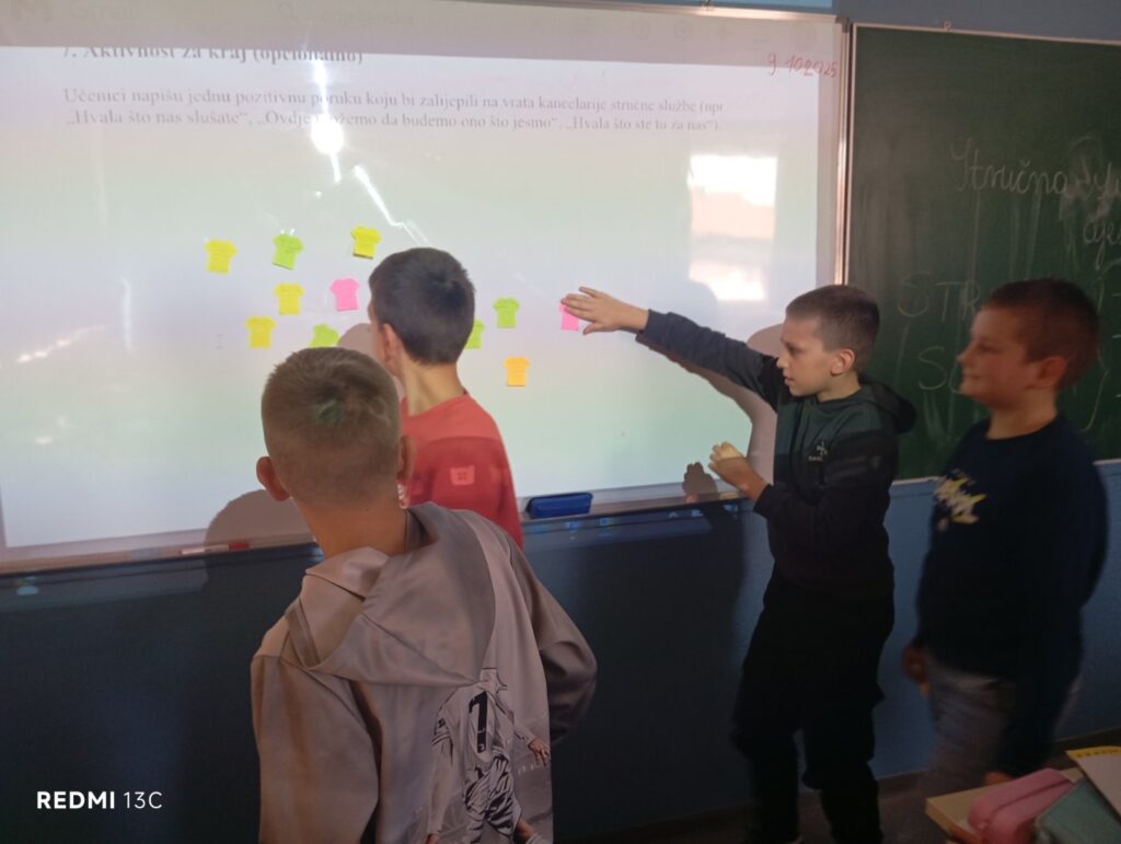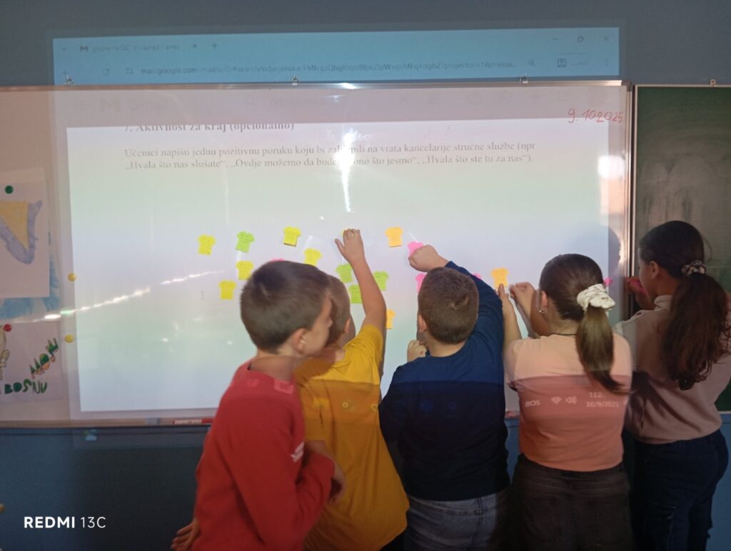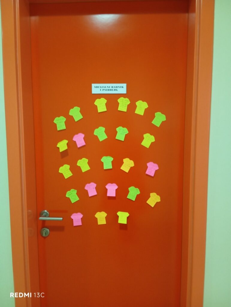 Na kraju časa, učenici su napisali kratke poruke za članove Stručne službe, koje su potom zalijepili na vrata njihove kancelarije. 🌸♥️